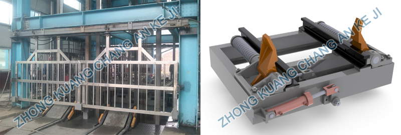 ●銷齒式操車系統包括TX型銷齒推車機、CY型井口搖臺、各種井底承罐裝置、ZDY型阻車器、GAM型安全門、液壓扳道器、TY型集中液壓系統、電控信號裝置等部分組成。